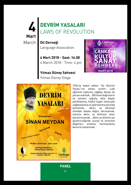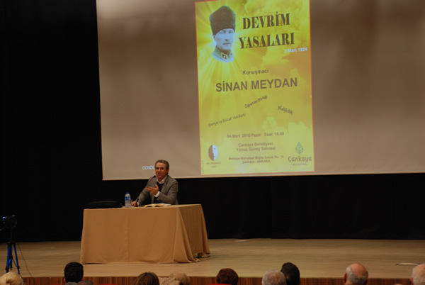 Tarihçi, Yazar Sinan Meydan 4 Mart 2018 Pazar günü Ankara’da Çankaya Belediyesi Yılmaz Güney Sahnesinde “Devrim Yasaları” başlıklı söyleşisiyle derneğimizin konuğu oldu.
