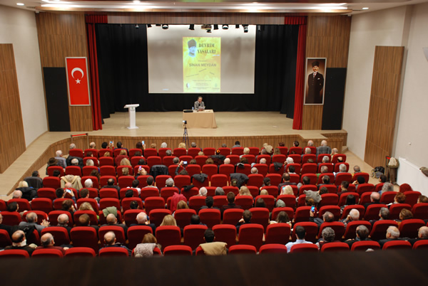 Şiddetli yağmura karşın salonu dolduran katılımcıları selamlayarak söyleşmeye başlayan Sinan Meydan konuşmasının başında: “Son söyleyeceğimi ilk söyleyeyim; umutsuzluğa yer yok. Ülkenin her yanında, özellikle gençlerin okuduklarını, Atatürk’ü, cumhuriyeti içselleştirdiklerini ve bu savaşıma omuz verdiklerini görmek beni umutlandırıyor, gelecek kaygılarımı azaltıyor. Anadolu’ya gittiğimde Attila İlhan’ın dediği gibi bir dip dalgasıyla karşı karşıya olduğumuzu görüyorum. Bu dip dalgası gençler tarafından yaratılan bir dalga. Okuyan, düşünen, sorgulayan gençlerimizin sayısı çok artmış durumda. Bu gençler internet üzerinden dünyaya ulaşıyorlar, dünyayı izliyorlar, arşivlere ulaşıyorlar, kütüphanelere ulaşıyorlar, bilgiye ulaşıyorlar, dolayısıyla karamsarlığa kapılacak bir durum yok.” dedi.