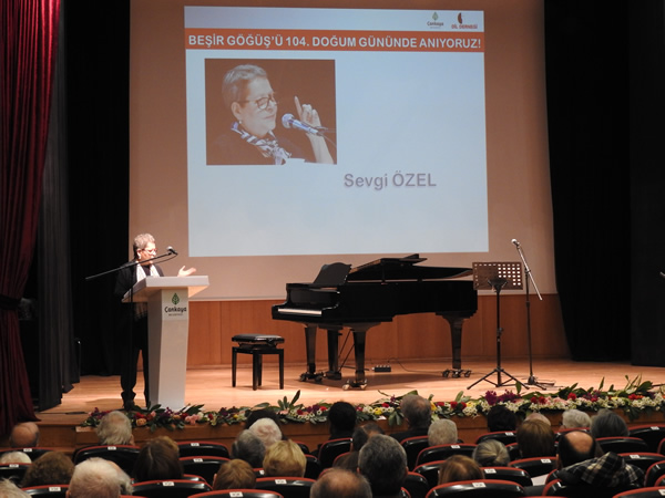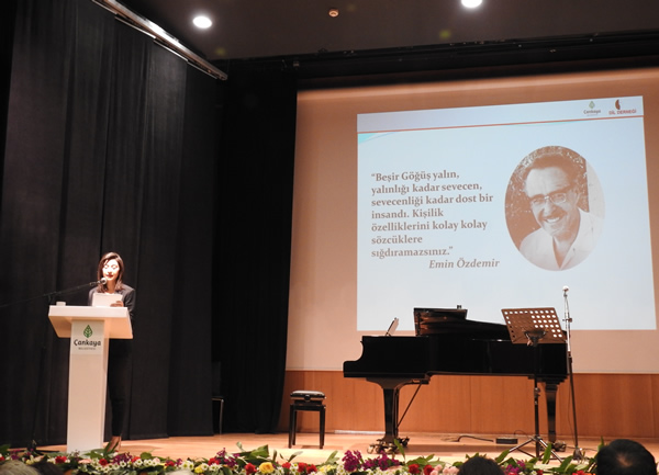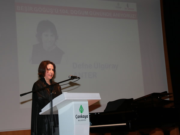 Belin Çelebi'nin sunduğu törende açış konuşmalarını Dil Derneği Başkanı Sevgi Özel ve Beşir Göğüş'ün torunu Defne Ülgüray Anter yaptı.