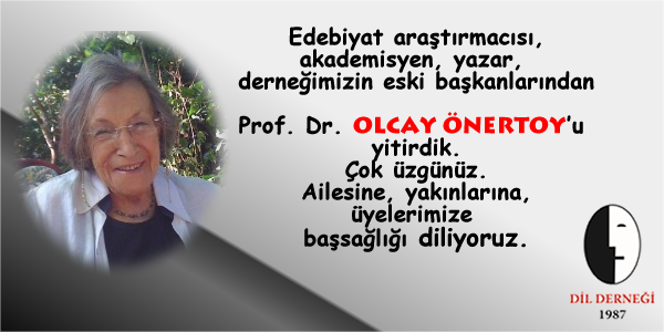Edebiyat araştırmacısı, akademisyen, yazar, derneğimizin eski başkanlarından Prof. Dr. OLCAY ÖNERTOY’u yitirdik.