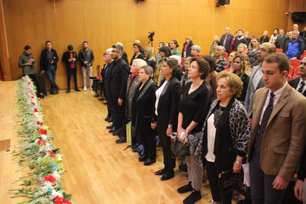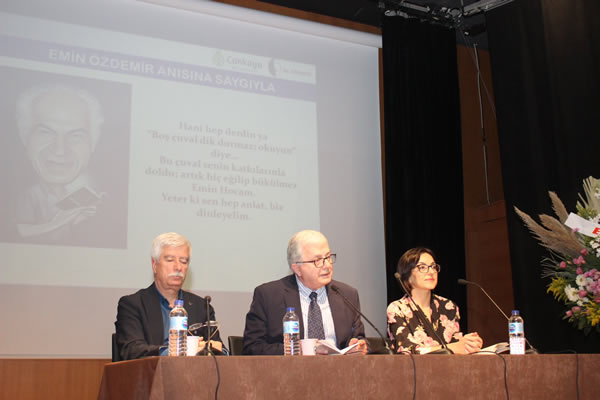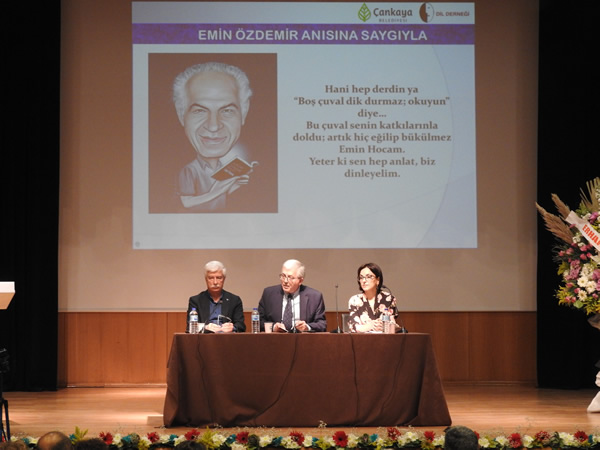 Ali Nihat Yavşan’ın sunduğu tören; Harf ve Dil Devrimiyle dil bilincimizi güçlendiren Mustafa Kemal Atatürk ve onun öncülüğünde Harf ve Dil Devrimini biçimlendiren Emin Erişirgil, İhsan Sungu, Fazıl Ahmet Aykaç, Ragıp Hulusi Özden, Ahmet Cevat Emre, İbrahim Grandi Grantay, Falih Rıfkı Atay, Ruşen Eşref Ünaydın, Yakup Kadri Karaosmanoğlu ve devrimciler yolunda yürüyen, devrimlere emek veren, yön veren tüm aydınlar için saygı duruşu ve İstiklal Marşı’yla başladı. Ardından sahneye yansıtılan Emin Özdemir resimleri eşliğinde onun düşünceleri, yaşamından kesitler, anılar paylaşıldı.