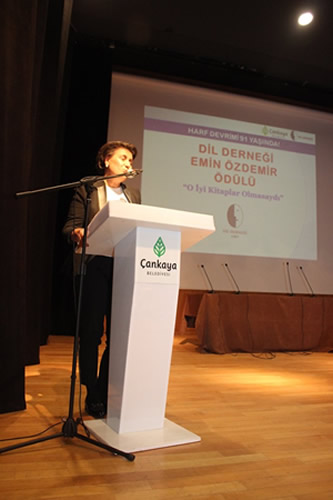 Gülsün Bor Güner, Çankaya Belediyesinin Dil Derneği ile işbirliği içinde Emin Özdemir Ödülü törenine ev sahipliği yaptığını, bu işbirliğinin geçmişteki gibi gelecekte de süreceğini, Emin Özdemir’in değerli bir yazar ve öğretmen olduğunu belirterek “Harf Devrimi’nin 91’inci yıldönümü kutlu olsun,” dedi.