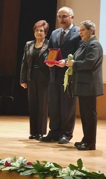 Dil Derneği Beşir Göğüş Türk Dilini ve Çocuk Edebiyatını Geliştirme Ödülünü kazanan Mehmet Saydur’a ödülü Dilek Göğüş Ülgüray ve Sevgi Özel sundu.
