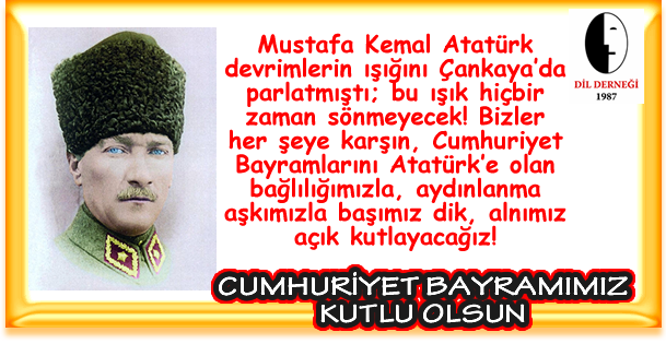 Mustafa Kemal Atatürk devrimlerin ışığını Çankaya’da parlatmıştı; bu ışık hiçbir zaman sönmeyecek! Bizler her şeye karşın, Cumhuriyet Bayramlarını Atatürk’e olan bağlılığımızla, aydınlanma aşkımızla başımız dik, alnımız açık kutlayacağız!