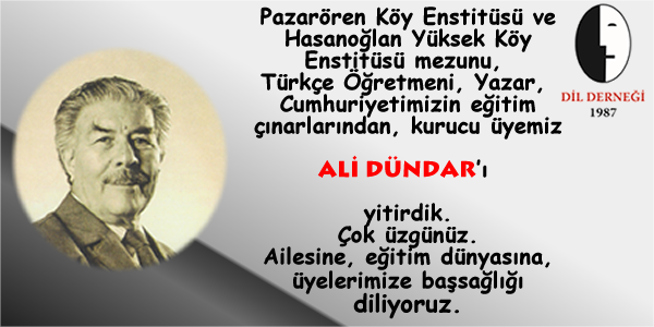 Pazarören Köy Enstitüsü’nü ve Hasanoğlan Yüksek Köy Enstitüsü’nü bitirip uzun yıllar pek çok çocuk ve genci Atatürkçü düşünceyle buluşturan, Dil Devriminin ışığındaki Türkçeyle hiç ödün vermediği cumhuriyetin değerlerini öğreten Ali Dündar Ankara’da Karşıyaka Gömütlüğündeki öğle namazından sonra toprağa verildi.