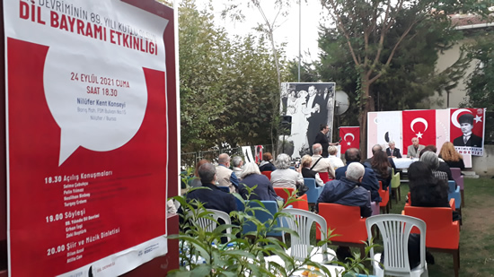 24 Eylül 2021 Cuma günü saat 18.30‘da Nilüfer Kent Konseyi bahçesinde Nilüfer Ünver Özyanık’ın sunumuyla yapılan etkinlik Dil Derneği Bursa Temsilciliği, Nilüfer Belediyesi ve Nilüfer Kent Konseyi işbirliğiyle gerçekleşti.