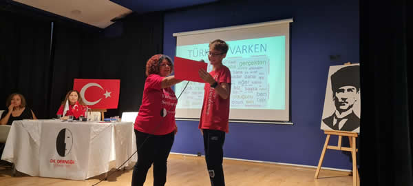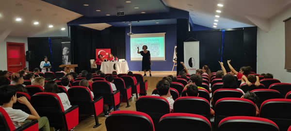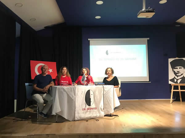 26 Eylül sabahı Girne Kolejinde ilkokul ve ortaokul öğrencileri için ayrı iki oturum şeklinde gerçekleşen etkinlikte Dil Derneği üyeleri öğrencilerle buluştu.