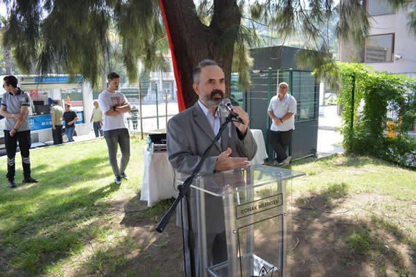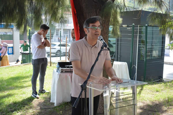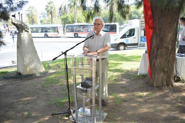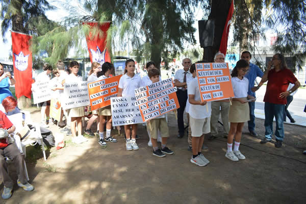 Tören, Türkçe Taşı'nda saygı duruşu, İstiklal Marşı ile başladı. Açılış seslenişlerinde Dil Derneği İzmir Temsilcisi Gürsel Gezen, Konak Belediyesi Kültür Müdürlüğü adına Ahmet Büke konuştu.