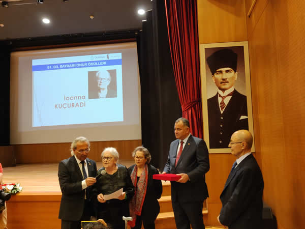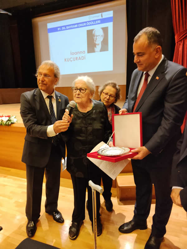 İoanna Kuçuradi konuşmasında ağırlıklı olarak örneklerle medyada kullanılan dili yerdi. Kendisini onur ödülüne layık gören Dil Derneği Başkanı ve yönetim kurulu üyelerine teşekkür etti.