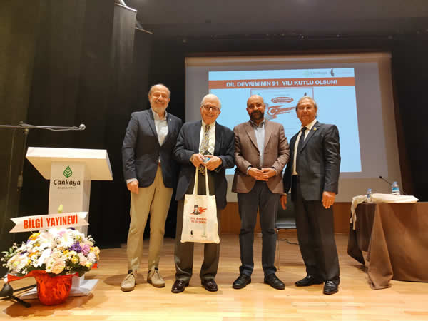 Dil Derneği ile Çankaya Belediyesinin ortaklaşa düzenlediği Dil Bayramı töreni, “Bizim yüzümüz her zaman ak ve temizdi, her zaman da ak ve temiz kalacaktır” diyen Mustafa Kemal Atatürk, Mustafa Kemal’in bütün kavga arkadaşları, laik cumhuriyete emek veren bilimciler, sanatçılar ve aynı gün yaşamını yitiren gazeteci yazar Hıfzı Topuz için bir dakikalık saygı duruşu ve İstiklal Marşı ile başladı.