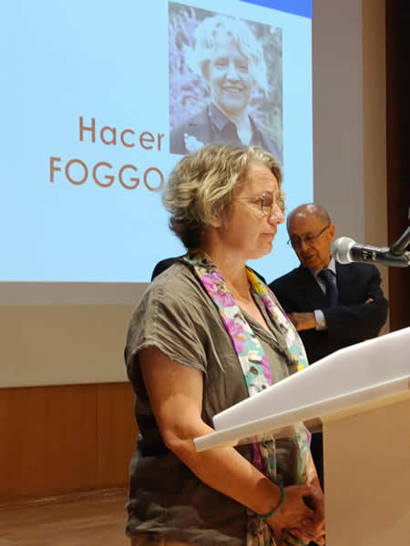 Hacer Foggo Dil Derneği Onur Ödülüne layık görüldüğü için teşekkür edip Mustafa Kemal Atatürk’ün “Cumhuriyet bilhassa kimsesizlerin kimsesidir,” şiarıyla yola çıktıklarınıvurgulayarak bu ödülü yoksul çocuklara adadığını belirtti.