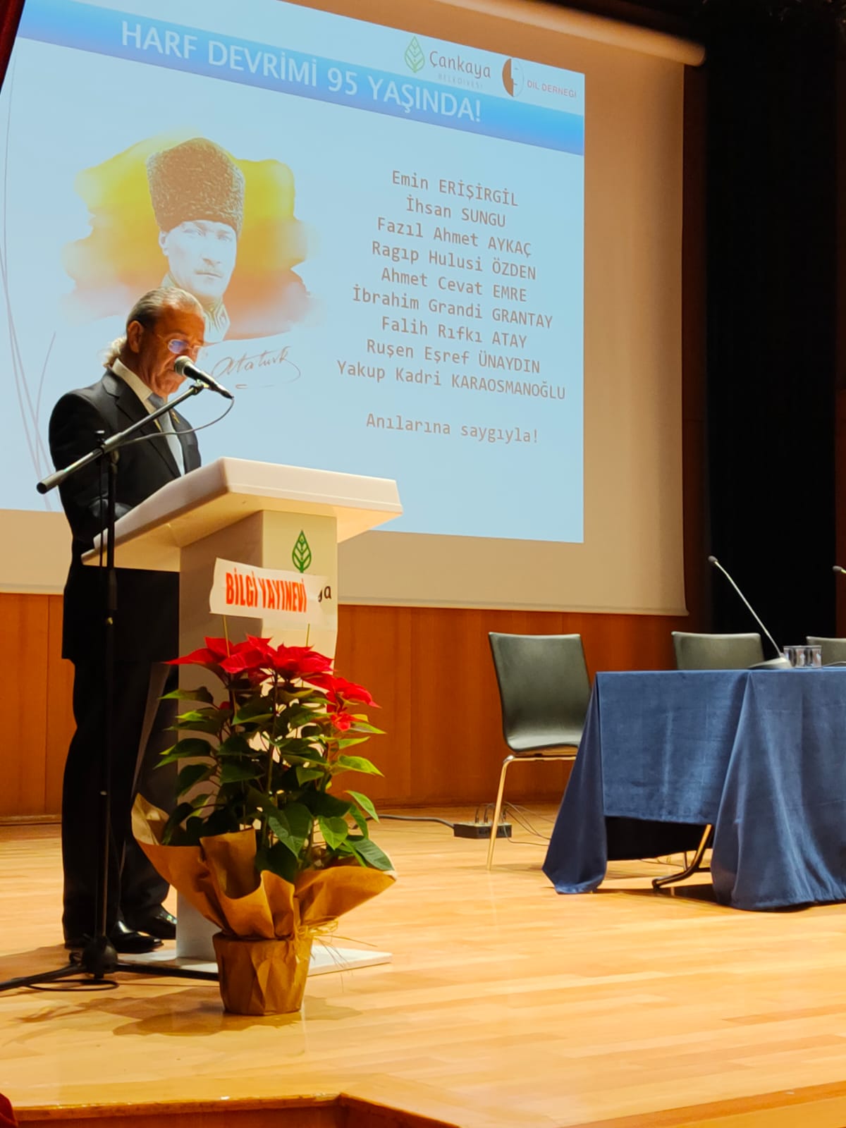“Dil öyle bir araç ki güzelliği, iyiliği, doğruluğu da, ihaneti de yansıtabileceğiniz bir araç. Harf Devrimi Cumhuriyet 5 yaşındayken, Dil Devrimi 9 yaşındayken yapıldı. Onların dediği gibi o dönem toplumun yüzde 90’ı okumuş olsaydı kapitülasyonları imzalayabilirler miydi? Harf ve Dil Devrimleri ile Mustafa Kemal Atatürk bizim hepimizin onurunu kurtarmıştır. Anımsıyor musunuz, Yerli Malı Haftası vardı. Her öğrencinin masasında adı ve üretimi yerli olan ürünler olurdu o gün. Şimdi geldiğimiz noktaya bakın.