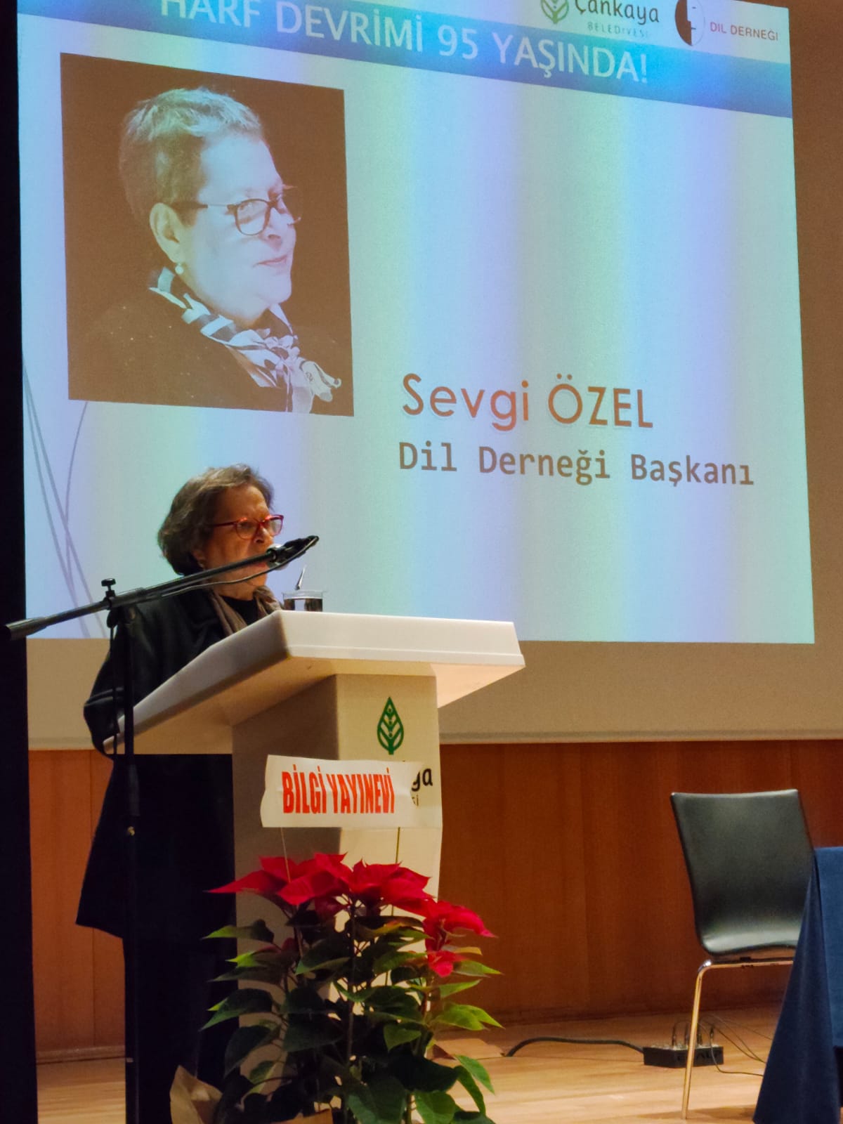 Törenin açış konuşmasını Dil Derneği Başkanı Sevgi Özel yaptı.
