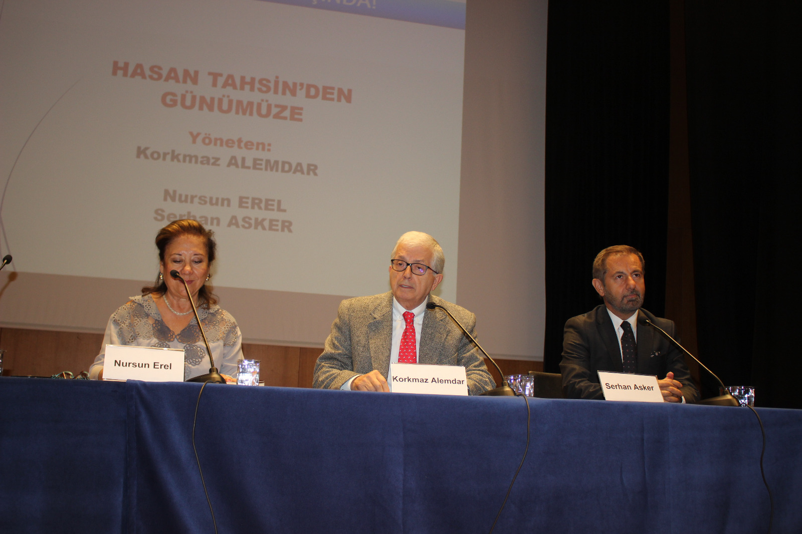 Hasan Tahsin’den Günümüze başlıklı açıkoturumu Prof. Dr. Korkmaz Alemdar yönetirken konuşmacılar gazeteci Nursun Erel ve televizyon programcısı Serhan Asker oldu.