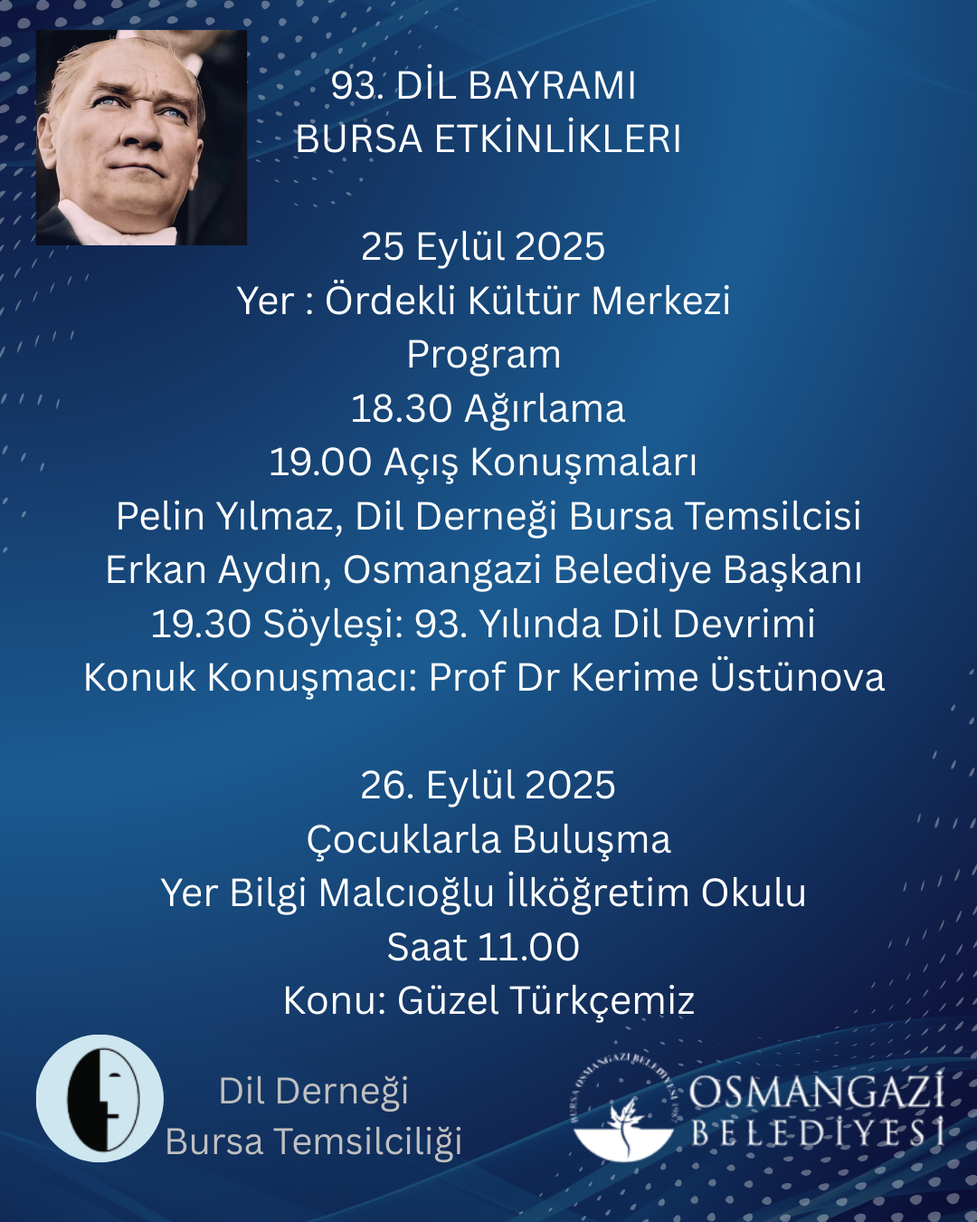 93. Dil Bayramını, 26 Eylül 2025’te, saat 11.00’de Çankaya Belediyesi Doğa Taşdelen Çağdaş Sanatlar Merkezindeki törenle kutlayacağız.