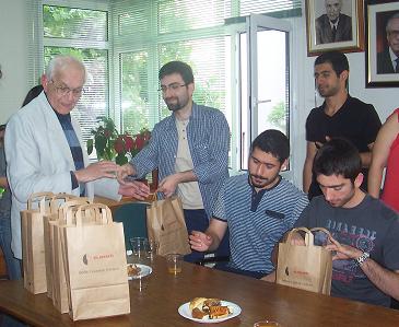 Yönetim kurulu üyelerimiz, ödül törenimizin başarıyla gerçekleşmesini sağlayan üniversitelilere, liselilere katkıları için teşekkür etti. Gençlerimize, coşkulu etkinliğimizin anısını yaşatmak, teşekkürlerimizi simgelemek üzere derneğimizin ürünlerinden oluşan armağanlarımızı sunduk. Armağanlarını Onursal Başkanımız Prof. Dr. Şerafettin Turan'ın elinden alan gençler, Dil Bayramında da ses bayrağımızı taşımayı sürdüreceklerini dile getirdi. |