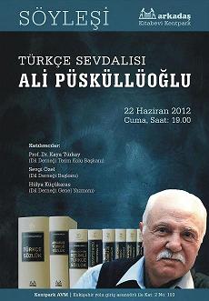 Ali Püsküllüoğlu'na ilişkin anıların, duyguların dile getirildiği oturumda ilk sözü alan Sevgi Özel, Ali Püsküllüoğlu’nun içten kişiliğini vurgularken şunları söyledi: "Arkadaş Yayınevi yönetici ve çalışanlarına gönül borcumuzu sunuyoruz. Büyük destek verdiler; Ali Püsküllüoğlu’nun sözlüklerini çok güzel bastılar. Ali Püsküllüoğlu ile Kasım 1971’de tanıştım. Türk Dil Kurumu'nda uzmandı. Kolay kaynaştığım bir insandı. Yakınları ona Arı Püsküllüoğlu derdi; o denli çalışkandı!.. Türk Dil Kurumu'nda her salı yayın kurulu toplanırdı. Ceyhun Atuf Kansu, Cahit Külebi, Salah Birsel gibi yazarlar katılırlardı toplantıya. Ali Püsküllüoğlu yönetirdi. Ceyhun Atuf Kansu’yu kapıda karşılardım. Her karşılamamda bana bir dörtlük ya da dize söyler, yazarını sorardı. Ben o dörtlüğü, dizeyi arar dururdum. Bulamazsam Ali Püsküllüoğlu’na giderdim. Dizeleri eksik aktardığımdan o da yazarını bulamaz, bana çıkışırdı... Ali Püsküllüoğlu’nun odası gerçek bir ekin ortamıydı. Tüm yetkin yazıncılar orada olurlardı. Cemal Süreya’yı da orada tanımıştım. Püsküllüoğlu ile en yoğun birlikte çalıştığım dönem, Dil Derneği'nin kuruluş dönemidir. 1984-1987 yılları arasında aydınlar tam anlamıyla savrulmuş durumdaydı. Dr. Haldun Özen dil bilinci yüksek bir kişiydi. Ali Püsküllüoğlu, ben ve Özen bir araya gelip aydınlara ulaşmaya çalıştık. Ali Püsküllüoğlu, çok çalışkan olduğu gibi yenilikleri de ilk uygulayan aydınlardandı. Daktilo uygulayımındaki gelişmeleri anında izlemiş, bilgisayarı da ilk kullananlardan olmuştu. Mektuplarımızı, derneğe çağrı yazılarını o yazdı. Derneği birlikte kurduk. Dil Derneği adını birlikte koyduk. Çağdaş Türk Dili dergisini birlikte yayımlamaya başladık. Yönettiği başarılı yazın dergisi Yusufçuk’u da ayrıca belirtmeliyiz. Ben, bir yoldaş, bir dost, bir ağabey olarak Ali Püsküllüoğlu'nu çok özlüyorum." |