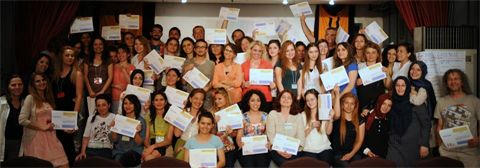Oluşum Drama Enstitüsü, drama liderlik programı lider adaylarının sunduğu tasarılara (projelere) önerilerimizle katkıda bulunduk. İlk günün öğleden sonraki bölümü "Yaratıcı Dil ve Drama" konusunda Oluşum Drama Enstitüsü’nden Uzman Gökçen Özbek’in sunumuyla başladı. "Anadolu Kilimlerinin Dili" başlıklı konuşmasında Meryem Güney, Bursa Kültür Okulları resim derslerinde öğrencileriyle gerçekleştirdiği kilim desenlerini, okuma çalışmalarını, desenlerin yarattığı çağrışımları ve sonuçlarını aktardı. Derneğimizin üyesi, Tiyatro Pembe Kurbağa Sanat Yönetmeni Ali Nihat Yavşan, "Çocuk Tiyatrosunda Dil" konulu sunumunda, çocuk için sahnenin dilinin, yaşamın dilinden daha etkileyici olabildiğini belirtti. Günün söyleşi bölümü AÜ Çocuk Gelişimi Bölümü Öğretim Üyesi Prof. Dr. Aysel Köksal Akyol, AÜ DTCF Tiyatro Bölümü öğretim üyeleri Doç. Dr. Tülin Sağlam ve Doç. Dr. Süreyya Karacabey, AÜ Eğitim Bilimleri Fakültesi Okul Öncesi Öğretmenliği Bölümü Araştırma Görevlisi Gökçe Karaman, Oluşum Drama Enstitüsü Drama Lideri Uzman Gökçen Özbek’in katılımıyla gerçekleşti. İkinci ve üçüncü gün yapılan işliklerle Türkiye 15. Drama Liderleri Buluşması sona erdi. |