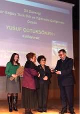 Ödülü, Yusuf Çotuksöken'e, Beşir Göğüş'ün kızı Dilek Göğüş Ülgüray ile Dil Derneği Başkanı Sevgi Özel sundular.