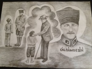 Şiir Üçüncüsü:Hicran Erdoğan 7/A - Şehit Teğmen Ertuğrul Platin İlköğretim Okulu-Mamak ATATÜRK Bütün bildiklerimden Daha yakınsın yüreğime. Alfabeyi hecelerken “Atatürk” yakıştı elime. Daha iyi anladım her yıl Açıldıkça düşüncelerim, İlk sevgim büyür, büyür de Seni daha da severim. Her yön sen olursun sen, Kitap, kalem, şapka, kravat, Sen Türkiye'mi uçuran En büyük tanrısal kanat. Düşmanların elinden, Bizi kurtaran sensin. Bu toprağa yeniden, Özlem kuran sensin. Ünümüzü dünyaya, Mertçe duyuran sensin. Gündüz gün, gece ay, Benzer kahraman sensin. | |