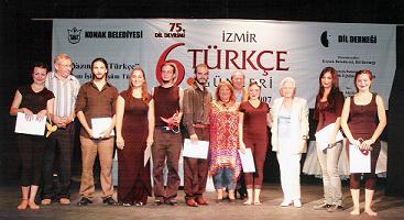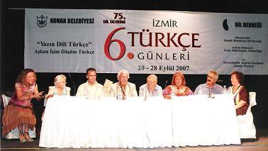 Neden Türkçe Günleri? 1. Türkiye kamuoyunun dikkatini, günlük yaşamda ve Türkçede artarak süren bozulma ve kirlenmeye çekmek... Öğretim dilinin Türkçe olması; eğitim, bilim, sanatta Türkçenin etkinliğinin artırılması çalışmalarına katkıda bulunmak... 2. Türkçenin doğru, özenli, iyi kullanılması çabalarını çoğaltmak, benzeri çalışmalara destek olmak... Türkçeye saygının; yaşama, bütün değerlerimize, emeğe saygı oluşunu yeniden vurgulamak... 3. Türkçenin coşkun akan ırmağından daha geniş kesimleri haberli kılmak... 4. Türkçenin kimi sorunlarını tartışmak; yapılabilecekleri araştırmak, bu alandaki çaba ve önerileri ortaya çıkarmak, duyurmak ve yaygınlaştırmak... Sayılarla Türkçe Günleri 2001’de başladık. Gelişerek/ geliştirerek ulaştık 6. yıla. Dil Devriminin 75. yılı dolayısıyla İzmir etkinliklerimiz 8 günü kapsadı bu yıl. Dil Derneği’nin Aydın ve Manisa oturumlarını da sevinçle karşılıyoruz. Konuklarımız İzmir dışından (15 kişi): Ankara, İstanbul, Çanakkale, Gökova, Ayvalık’tan konuklarımız oldu. Prof. Dr. Aydın Köksal (dilimizin büyük emekçisi); Ayla Çınaroğlu, Aytül Akal, Fatih Erdoğan (çocuk yazınımızın usta kalemleri); Feyza Hepçilingirler, Hürriyet Yaşar, Hüseyin Atabaş, Oktay Akbal (öykü ve şiirin ustaları); Macide Tanır (tiyatromuzun unutulmaz sesi); Sevgi Özel (Dil Derneği Başkanı); Prof. Dr. Şerafettin Turan (Atatürk'ün TDK’sinin son başkanı, Dil Derneği Onursal Başkanı); Foça’dan: Ahmet Önel, Özcan Yalım;Dikili’den: Aysel Arabacıoğlu, Tahsin Yücel. İzmir’den (40 kişi): Ahmet Günbaş, Ali İşçimen, Atila Er, Dinçer Sezgin, Efdal Sevinçli, Ferhat İşlek, Gürol Tonbul, Hacer Kılcıoğlu, Hakan Akmaz, Hakan Cem, Hale Gür, Halim Yazıcı, Handan Gökçek, Hayri Oğuz, Hidayet Karakuş, Hülya Savaş, Hüseyin Yurttaş, M. Sadık Kırımlı, Makbule Kaya, Mavisel Yener, Mehmet Atilla, Mehmet Sarsmaz, Mevlüt Kaplan, Muzaffer İzgü, Muzaffer Sarıgül, Oğuz Tümbaş, Osman Kalay, Prof. Dr. Özdemir Nutku, Sabahattin Gülümser, Selen Aktuğ, Prof. Dr. Semiramis Yağcıoğlu, Talat Aydilek, Turgay Gönenç, Veysel Beyazadam, Veysel Çolak, Y. Bekir Yurdakul, Yaşar Üstün, Zehra Ünüvar, Zeliha Akçagüner, Zeynep Uzunbay Etkinliklerimiz Salon etkinliklerimiz,Dr. S. Akçiçek Eşrefpaşa Kültür Merkezi’nde, 4 gün sürdü.Okul etkinliklerimiz, 9 ayrı okulda("Aşkım İşim Düşüm Türkçe" başlıklı söyleşiler) yapıldı: Küçükyalı Anadolu Meslek ve Kız Meslek Lisesi, Barbaros Hayrettin İlköğretim Okulu, Emrullah Efendi İlköğretim Okulu, Şehit Fazıl Bey İlköğretim Okulu, Şehit Muzaffer Erdönmez İlköğretim Okulu, 50. Yıl Lisesi, Atatürk Ticaret Meslek Lisesi, Naci Şensoy Lisesi, Nevzat Ayaz Lisesi. Etkinlikler: Dil İşliği, Dil Oyunları'nı Gürol Tonbul hazırladı. Dil Sokağı'nı Küçükyalı Anadolu Meslek ve Kız Meslek Lisesi hazırladı. 75. yıl özel etkinlikleri çerçevesinde "75 Yılın Emekçilerinden…”adlı söyleşiyi Mavisel Yener hazırladı; Dil Devriminin 75. Yılı oturumlarını yaptık, “Dilin Kemiği"başlıklı karikatür sergisini düzenledik; "Emek Ödülleri"sergisini ise Mehmet Atilla hazırladı. Konuşmalar: “Aşkım İşim Düşüm Türkçe”/ Konuşmacı: Feyza Hepçilingirler “Sözcüklerin Anlam İlişkileri”/ Konuşmacı: Özcan Yalım “Bilişim Sözlerinin Türk Aydınlanmasındaki Yeri”/ Konuşmacı: Prof. Dr. Aydın Köksal Söyleşiler: “Yazın Dili Türkçe”/ Konuşmacılar: Prof. Dr. Özdemir Nutku, Prof. Dr. Şerafettin Turan “Türkçe Düşünmek…”/ Konuşmacılar: Ahmet Önel, Mehmet Sarsmaz, Prof. Dr. Semiramis Yağcıoğlu/ Yöneten: Prof. Dr. Semiramis Yağcıoğlu “Aramızdan Ayrılışının 50. Yılında Nurullah Ataç”/ Konuşmacılar: Efdal Sevinçli, Turgay Gönenç “75. Dil Bayramımız”/ Konuşmacılar: Prof. Aydın Köksal, Macide Tanır, Oktay Akbal/ Yöneten: Prof. Dr. Özdemir Nutku “Türkülerle Çoğalan Türkçemiz”/ Konuşmacılar:Hakan Akmaz, Hale Gür, Makbule Kaya, Osman Kalay, Sabahattin Gülümser/ Yöneten: Hidayet Karakuş “Aşkım İşim Düşüm Türkçe”/ 8 okul etkinliğinde 26 konuşmacı Okuma Saati: Çocuk Yazınımızdan Bir Demet”/ Katılanlar: Ayla Çınaroğlu, Aytül Akal, Fatih Erdoğan, Hidayet Karakuş, Hüseyin Yurttaş, Mavisel Yener, Mehmet Atilla, Zehra Ünüvar Armağan Kitaplarımız İzmir Konak Belediyesi ile Dil Derneği’nin ortaklaşa düzenlediği 11 günlük etkinlikte bütün katılımcılara, Dil Derneği’nin hazırladığı, basımını Konak Belediyesi’nin üstlendiği “Şiirlerle Atatürk’ü Anlamak” adlı seçki kitap ve kitapta yer alan şiirleri seslendirme ustası Rüştü Asyalı’nın seslendirdiği CD armağan edildi. Etkinlik kapsamında düzenlenen okul söyleşilerinde gençlere, söyleşilere katılan yazarların 800 adet kitabını, Konak Belediye Başkanı Ali Muzaffer Tunçağ armağan etti. Aşkımız İşimiz Düşümüz Türkçe! Aydın, Nazilli, Kuşadası, Söke ve Manisa oturumlarının ardından başlayan İzmir etkinliğinin açılışında konuşan Konak Belediye Başkanı Ali Muzaffer Tunçağ, Atatürk’ün Dil Devrimini sürdürmeye kararlı olduklarını belirterek “Türkçemizin elimizden kayıp gitmesine asla izin vermeyeceğiz.” dedi. Dil Derneği Başkanı Sevgi Özel, Türk Dil Kurumu’nun 1983’te kapatılmasıyla ortaya çıkan boşluğu Dil Derneği’nin doldurduğunu, Dil Devriminin bayrağını 20 yıldır onurla taşıdığını söyledi. Özel, Türkçenin kirlendiği savlarına katılmadıklarını, kirliliğin insanda, düşünce ve kurumlarda aranması gerektiğini belirtti. Küçükyalı Anadolu Meslek Lisesi öğrencilerinin “Dil Sokağı” sergisiyle, Özel Çamlaraltı Koleji Şiir Topluluğunun şiirli-danslı sahne etkinliği ve Özel Yöneliş K