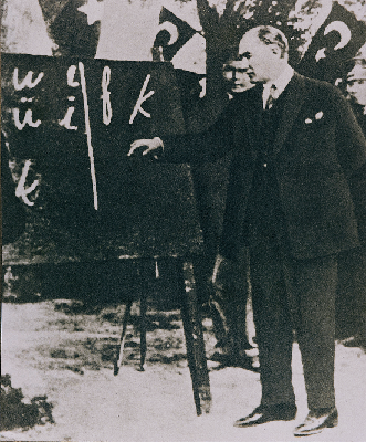 "Bugün yapmak zorunda bulunduğumuz çok değerli bir iş daha vardır: Yeni Türk harflerini çabuk öğrenmek... Kadına, erkeğe, hamala, sandalcıya, bütün yurttaşlara öğretiniz... Bunu yurtseverlik, ulusseverlik görevi biliniz. Bu görevi yaparken düşününüz ki bir ulusun, bir sosyal topluluğun yüzde onu ancak okuma yazma bilir, yüzde doksanı bilmezse, bundan insan olanların utanması gerek."