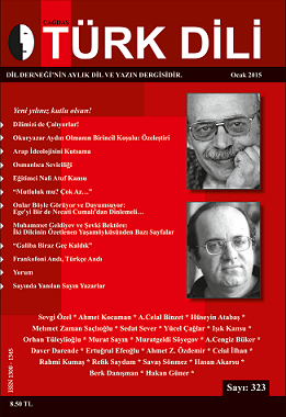 | Yayın Yönetmeninden Günay Güner Sevgili Dostlar, Yeni yılınız kutlu olsun! 2015 yılına Osmanlıca tartışmalarıyla girdik. Tartışma demek de ne değin doğru? Bir yanda bilgisizlik, dayatma diğer yanda nesnellik ve bilgi! Osmanlıcanın yaşayan bir dil olmadığı savı çok yerindedir. Osmanlıca bir sözcüğün değişime uğradığı görülmez, gösterilemez; çünkü bu dilin bir topluluğu, halkı, ulusu yoktur. Değişebilmesi için yaşaması gerekir. Yeryüzü dilleri arasında sayılması olanaksızdır. Osmanlıca tarihte de yaşamamıştır, günümüzde de ölüdür. Cumhuriyet kurulduğunda halkta okuryazar kimse olmadığından “Bir günde cahil bırakıldık” yalanına inanan kalmadı. Gömüt taşlarını okuyamamak da aynı derecede gerçekdışıdır. Belirttiğimiz gibi, Osmanlıda okuyan yazan yoktu ki gömüt taşında ne yazdığının önemi olsun. Kaldı ki o dönemde de halkın dili Türkçedir. Yazının tümü için tıklayınız: Yayın Yönetmeninden |