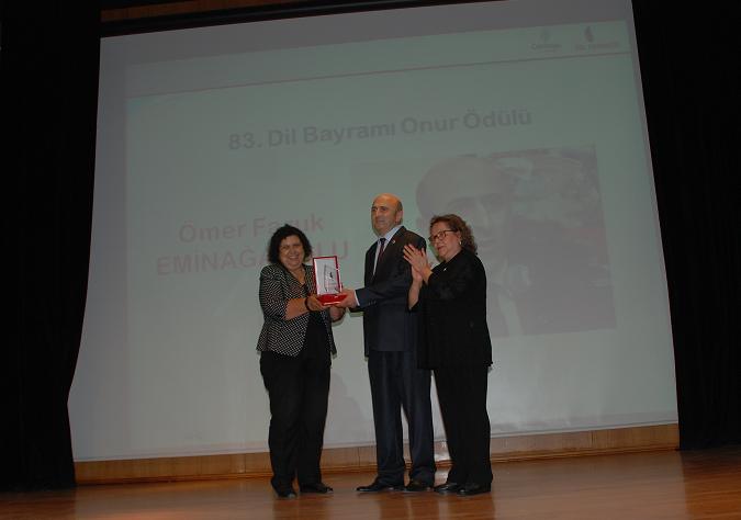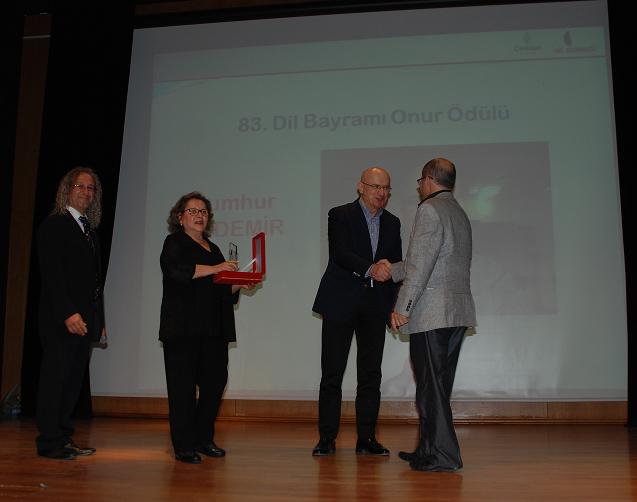 Geçen yıllarda olduğu gibi bu yıl da Şair Haydar Ergülen’e, Hukukçu Ömer Faruk Eminağaoğlu’na, Avukat Rahmi Kumaş’a, Büyükelçi Ülkü Başsoy’a, Yayıncı Cumhur Özdemir’e, Spiker Elçin Temel’e ve Gazeteci Merdan Yanardağ’a “83. Yıl Dil Bayramı Onur Ödülü” sunuldu.