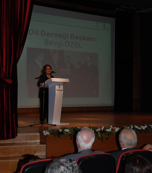 Çankaya Belediyesi Çağdaş Sanatlar Merkezinde, “Yaşar Kemal Konferans Salonu”nda saat 17.00’de başlayan töreni bayramın önemini yansıtan aktarımlar, şiirler ve görüntüler eşliğinde Sanatçı Ali Nihat Yavşan sundu. İlk konuşmayı Başkan Sevgi Özel yaptı. Dilde devrimin başlamasından sonra yaşananlara değinen, tüm ulusal bayramlar gibi Dil Bayramını da buruk bir coşkuyla kutladığımızı söyleyen Özel, TDK’nin neden kapatıldığını, son yıllardaki dil tartışmalarının neden bilimsel gerçekler çarpıtılarak yapıldığını anlattı.
