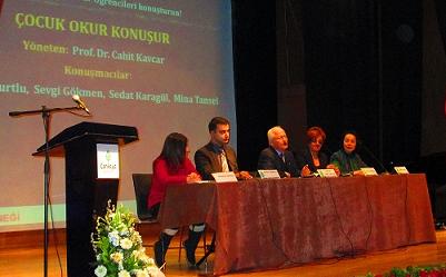 Etkinliğin son bölümünde yapılan açıkoturum “Çocuk Okur Konuşur” başlığını taşıyordu. Prof. Dr. Cahit Kavcar’ın yönettiği açıkoturumun konuşmacıları Bengisu Yurtlu (lise öğrencisi), Sevgi Gökmen (Türkçe öğretmeni), Sedat Karagül (araştırma görevlisi-AÜ Eğitim Bilimleri Fakültesi ve ÇOGEM) ile Yazar Mina Tansel’di.