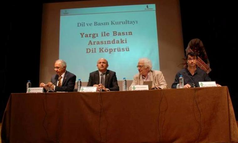Dil ve Basın Kurultayının ilk açıkoturumunun başlığı “Yargıyla Basın Arasındaki Dil Köprüsü”ydü. Açıkoturumu yöneten Orhan Bursalı İtalya’da bir pazar yerini gezerken duyduğu Türkçe tümcelerin nasıl bir sıcaklığı, birlikteliği oluşturduğu anısıyla başladığı konuşmasında, “Basın geçmişte olmadığı kadar toplumsal görevinden uzaklaştırılmış, yozlaştırılmış, baskılanmış durumdadır. Basının özelliklerine bakıldığında parçalanmışlık, internet gazeteciğinin yaygınlaşması, iktidarınsa her tür basın üzerine baskısı görülüyor. Bilişim, internet gazeteciliği-televizyonculuğu basın tekellerine karşı demokratik basını güçlendirmek yönünde olanak da yaratıyor. Yargı ise en derin yaramız; yargının da iktidarın amaçları için kullanılmasının ağır sonuçlarını yaşıyoruz. Ne ki toplumda güçlü bir direniş de var. Umutsuz olunmamalı. Prof. Dr. Aziz Sancar’la Hacettepe Üniversitesi buluşmamızı anımsıyorum; Nobel Kimya Ödülünü kazanma başarısının temelinde cumhuriyetin güçlü eğitim dizgesinin olduğunu söylediğinde salondakilerin tümü dakikalarca ayakta alkışladılar. Özellikle üniversitelerde dipdiri bir direniş gözlüyorum,” dedi.